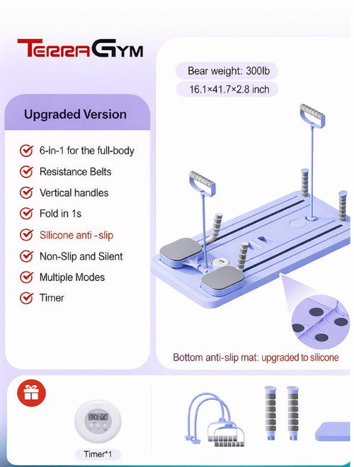 TerraGym Pilates Board with Resistance Bands Timer and Knee Mat for Home Use